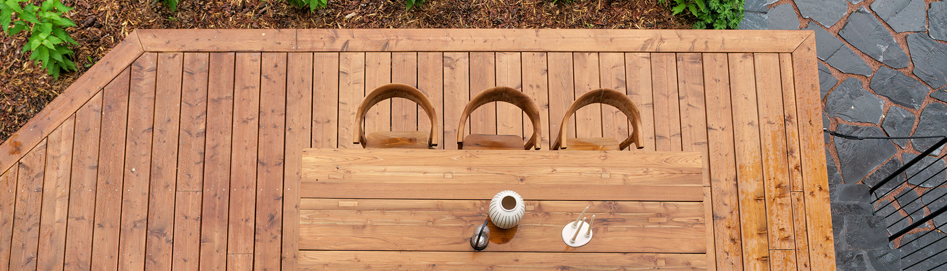 • En indbydende træterrasse, hvor familien kan samles på lune sommerdage.